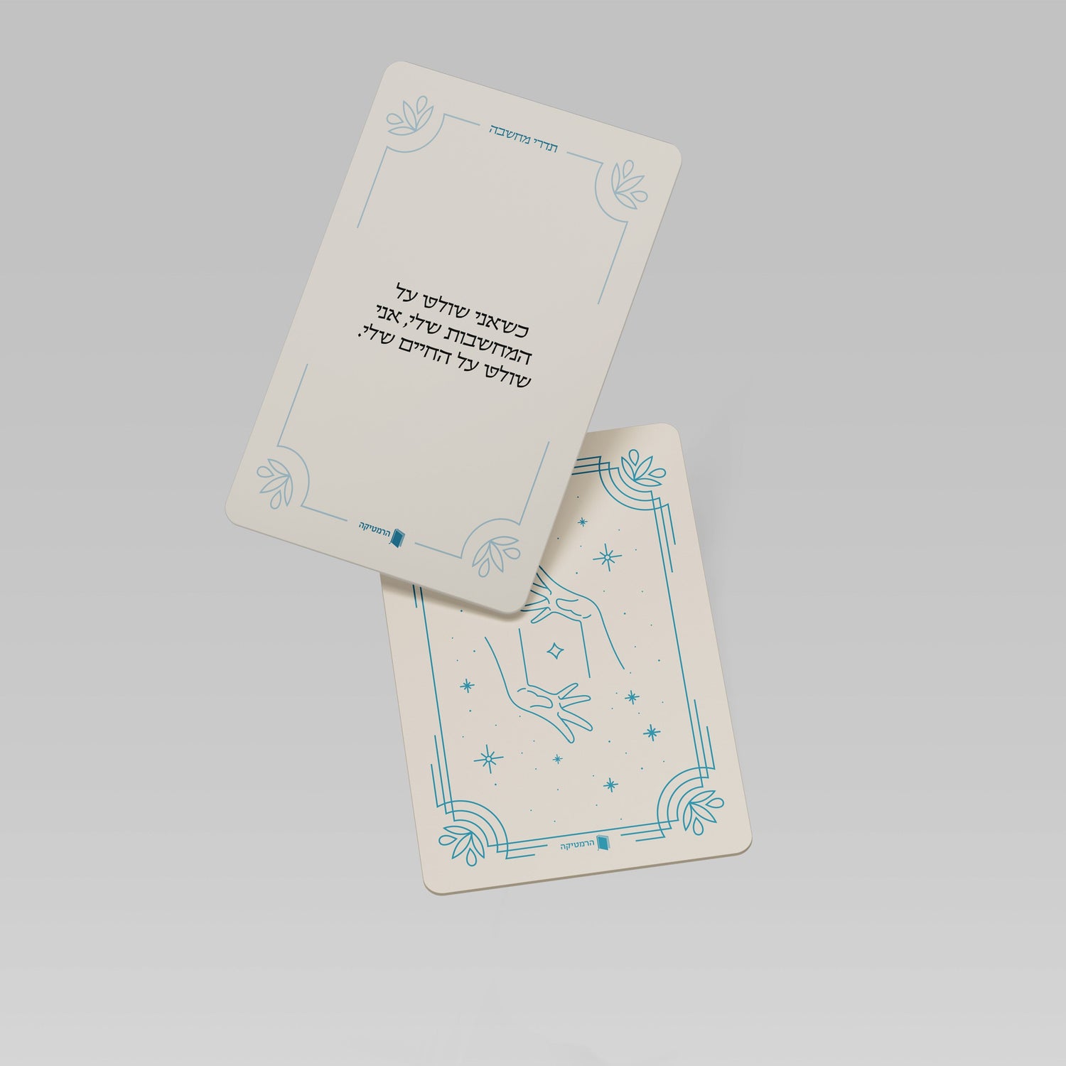 קלפי ההשראה של תדרי מחשבה הם יותר מסתם קלפים - זה מצפן פנימי לתודעה שלכם. המחשבות שלכם משפיעות עליכם יותר ממה שאתם חושבים, והקלפים האלו יעזרו לכם לעשות סדר ולהבין: מה קורה בתודעה שלכם, איך לנצח מחשבות רעות - כמו לחץ חרדה דאגה וכו' ואיך אתם יכולים לשנות לעצמכם את החיים - בעזרת שליטה במחשבות.